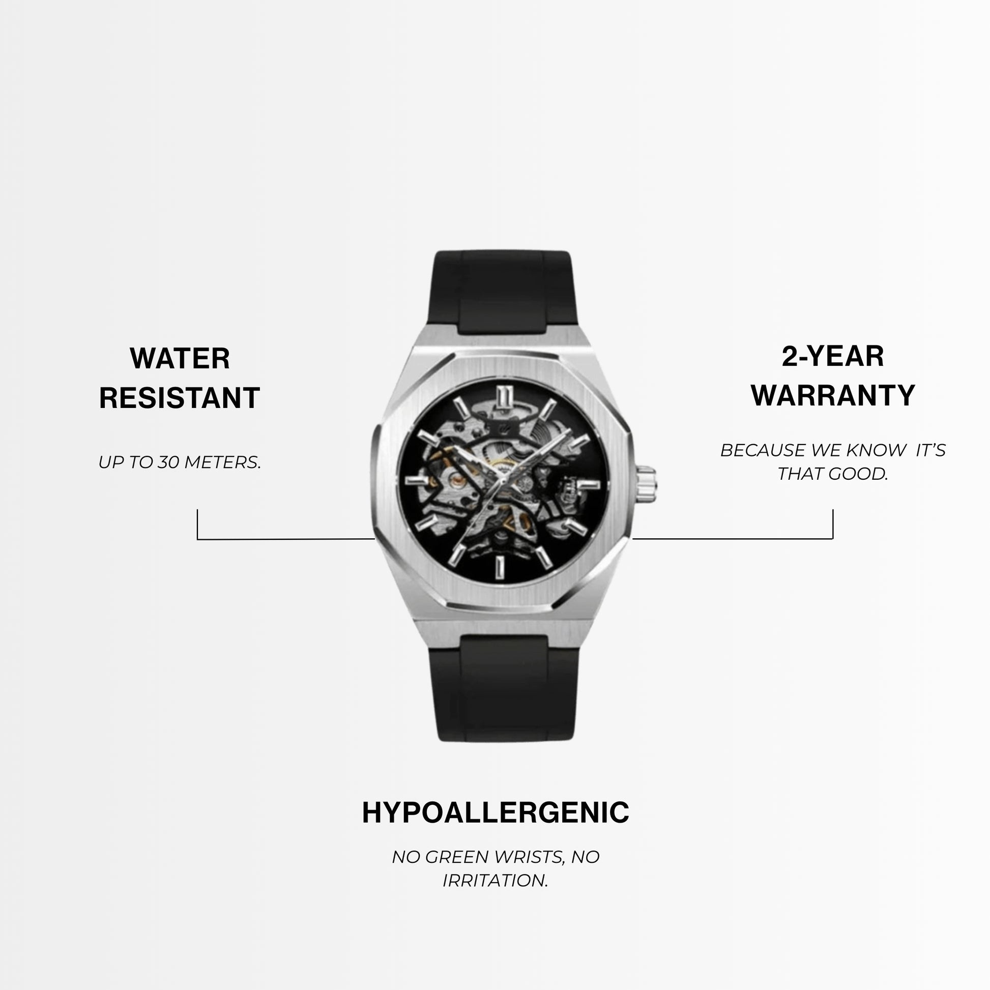 Each watch comes with a 2-year guarantee, covering any manufacturing defects or craftsmanship issues. If there’s a problem, we’ll repair or replace it free of charge within two years from purchase.